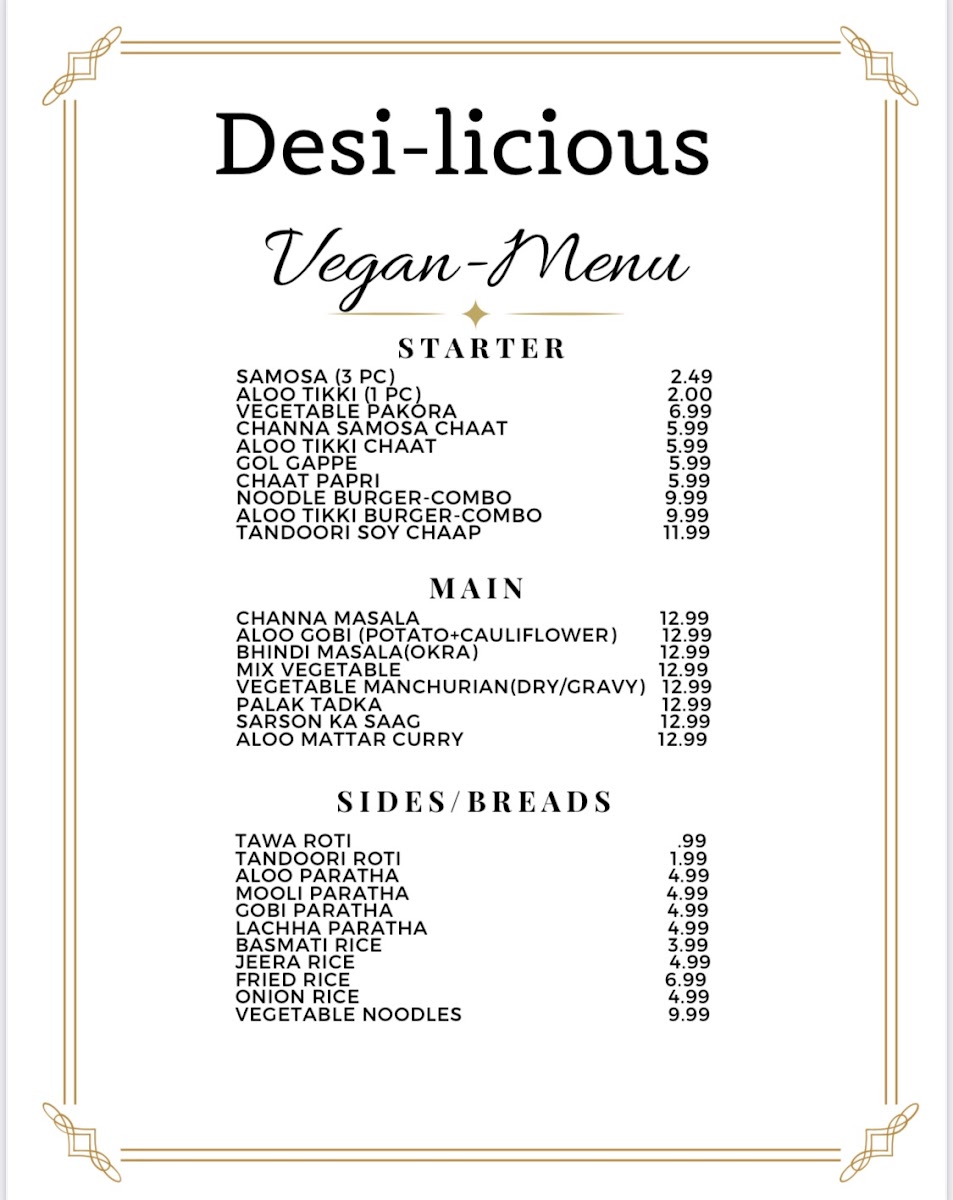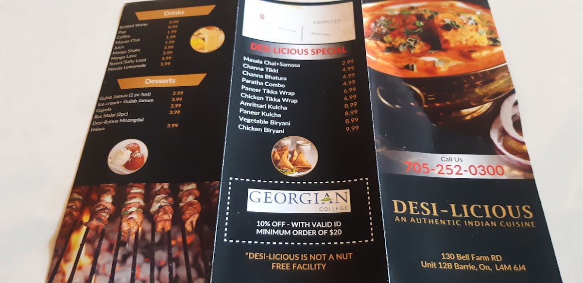 Prepare your taste buds for a culinary adventure at Desilicious, located at 130 Bell Farm Rd Unit 12B, Barrie, ON L4M 6J4, Canada! Our menu is a celebration of vibrant flavors and traditional recipes, featuring a delightful array of specialties that will transport you straight to the heart of Indian cuisine. Don’t miss our Hara Bhara Kebab, a tantalizing blend of vegetables and spices, or the crispy Amritsari Fish Pakora that’s perfect for sharing. For those who crave variety, our Vegetarian Snack Platter offers a mouthwatering selection of treats like Chana Samosa and Dahi Bhalla. Pair your snacks with a refreshing Paani Poori or indulge in the comforting taste of our Vegetable Noodles and fried rice options. Come experience a menu that promises to delight and inspire—your new favorite dishes await!